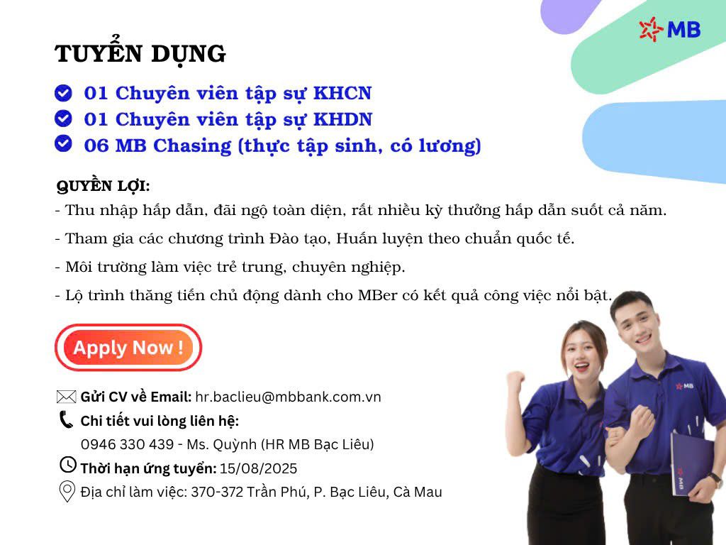 [MB Bạc Liêu] TUYỂN DỤNG